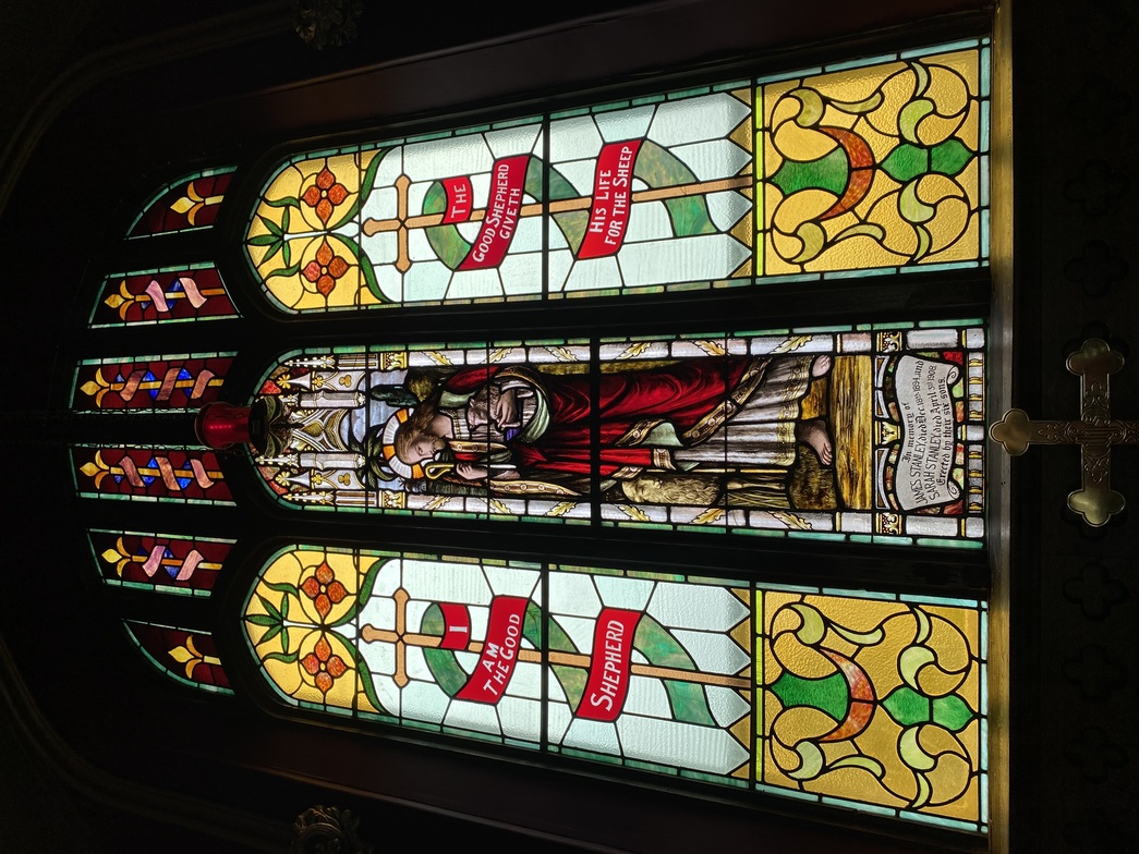 This window, which is located next to the Frank Street door, depicts Jesus welcoming the children. It is in memory of John and Dell Sprowl, George and Clarissa Howard, and Casper and Cora Howard, by their family.